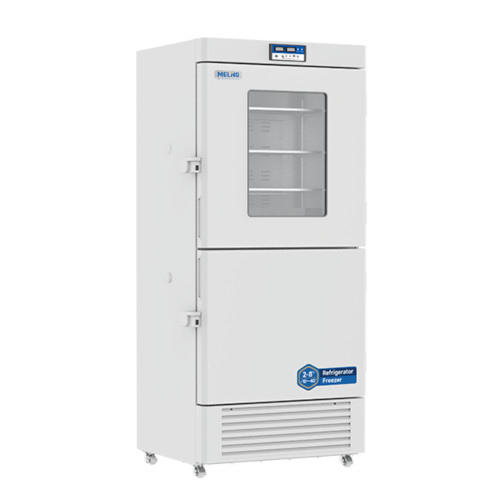 Meling 2℃~8℃/-10℃~-40℃ combination refrigerator freezer YCD-FL519 is designed with separate control of refrigeration and freezing. It comes with two compressors and separate control of upper refrigeration chamber and lower freezer chamber. This fridge freezer combo adopts Freon-free refrigeration, which is environmentally friendly and energy-saving. And it comes with updated thermal insulation with CFC-free polyurethane foam technology and thicker insulation layer. The high-precision computerized temperature control helps you to set the upper temperature in a range of 2℃~8℃ and lower temperature in a range of -10℃~-40℃. Meling 2℃~8℃/-10℃~-40℃ Medical Refrigerator & Freezer YCD-FL519 is specially designed for reagent and other medical and laboratory materials storage.