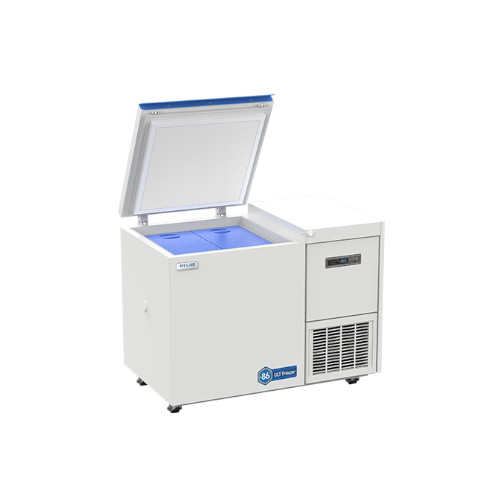 Meling -86℃ ultra low temperature chest freezer equipped with microprocessor-based temperature controller, -40℃~-86℃ adjustable , controlling precision is 1℃, digital temperature display. Keyboard lock and password protected configuration page, delayed start and safe stop interval between restart and being terminated.