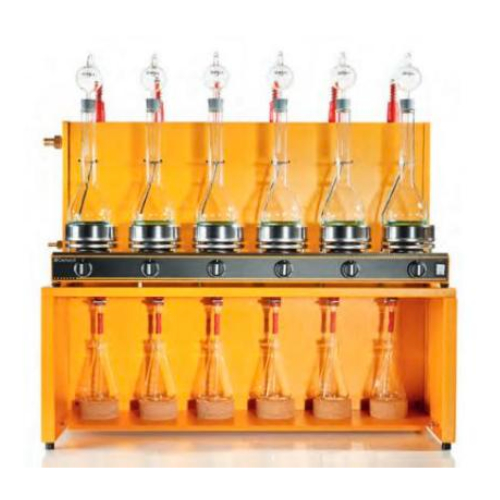 • With Kjeldahl flasks, Reitmair tops, condenser tubes, discharge tubes, Erlenmeyer flasks, all rubber connectors, stands and mains cable.